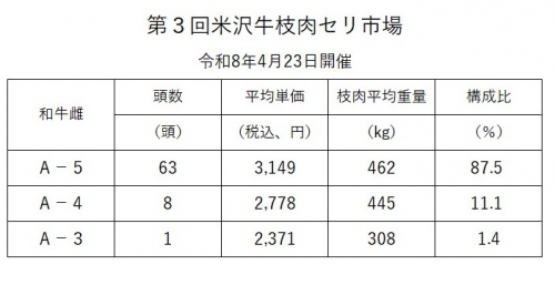 令和8年度 第3回米沢牛枝肉セリ市場